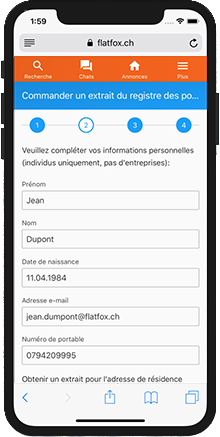Lorsque vous faites une demande d'appartement sur Flatfox, vous pouvez utiliser directement le extrait du registre des poursuites électronique.